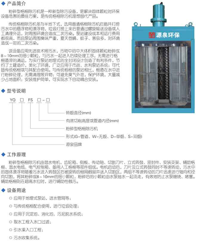 YQFS粉碎型格栅除污机